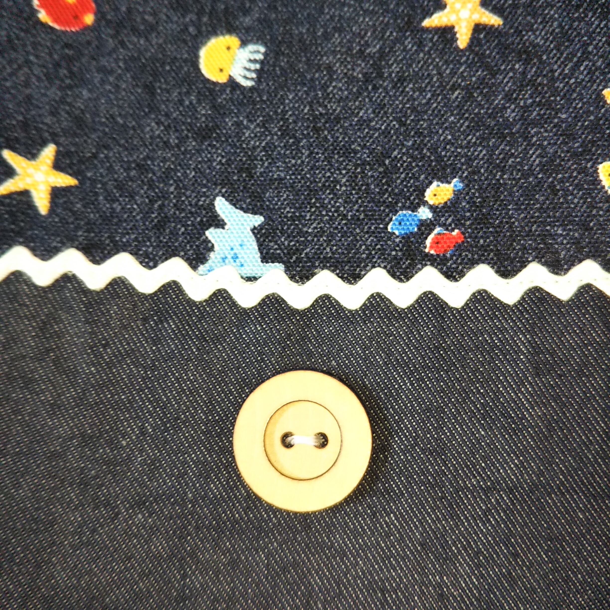 裏布をしっかりしたキルティング生地にし、ふた部分にはお子様でも扱いやすいように大きめのマジックテープをお付けいたしました。