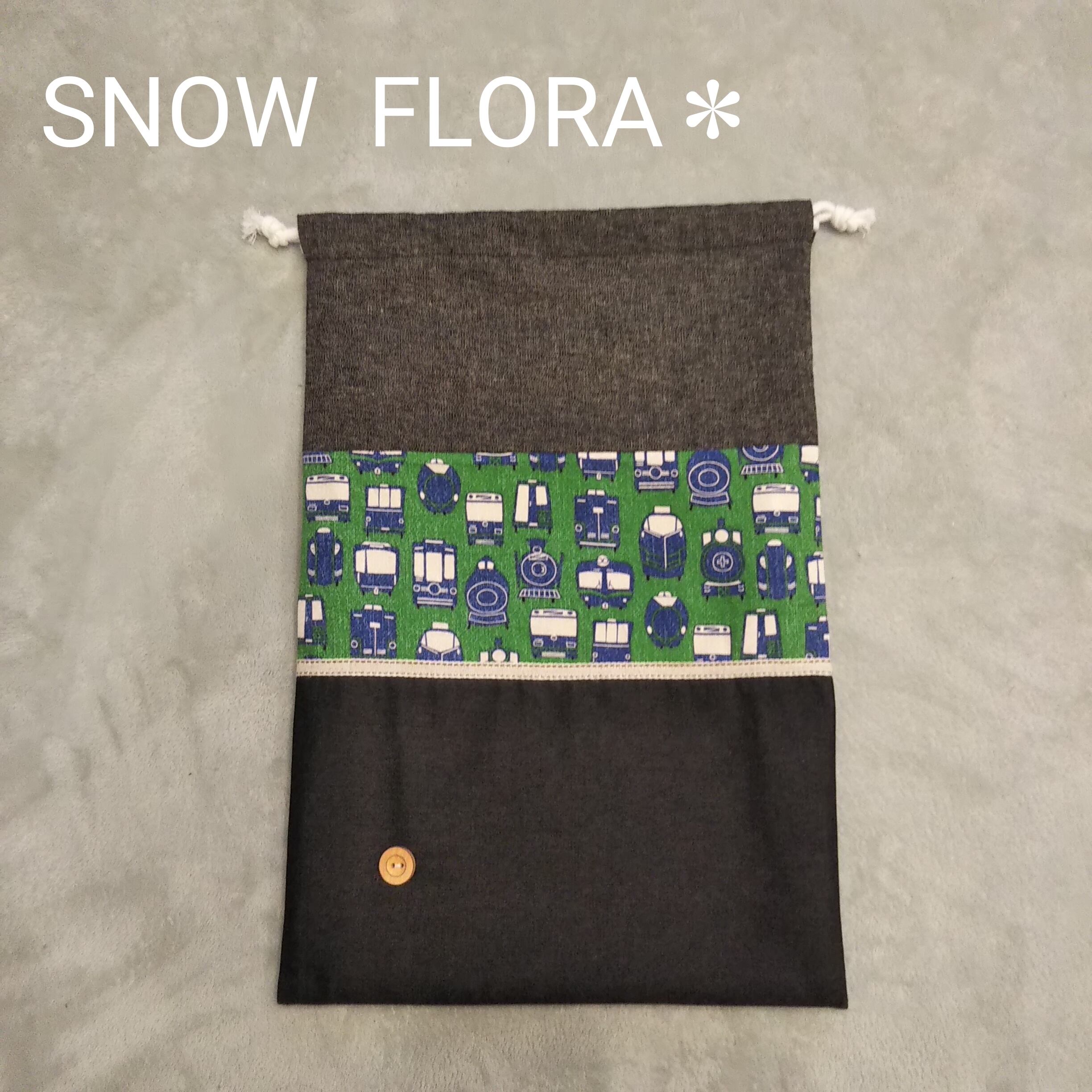 ☆こちらは 関様 専用ページとなっております。 体操着袋 ダンガリーブラック×電車柄×無地 サイズは横30cm×縦45cm 標準タイプ