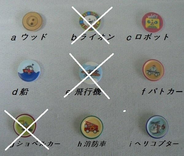 すべてに黄緑ドットのクルミボタンが付いていますので、小さなお子様にもわかりやすいと思います。